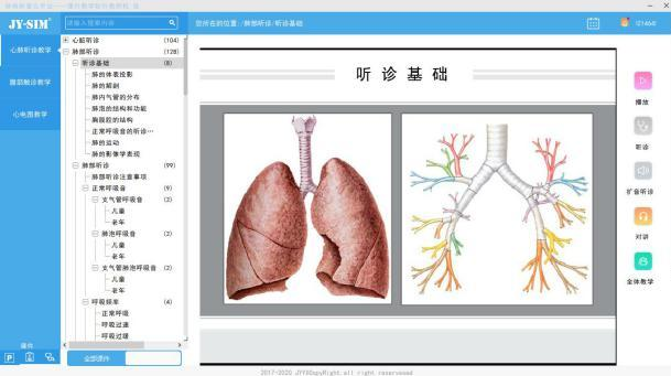 1. Adopt an electronic stethoscope that can automatically identify the auscultation sites. Use the “non contact landmark network” technology to completely cover each auscultation site and auscultation area. Through the identification and management of logic programs, intelligent auscultation is achieved and the electronic stethoscope is placed on the simulated human body. Any of the auscultation sites can hear their respective physical signs, like physical examination on real patients; more than 150 physiological and pathological signs of common cardiovascular examinations and more than 80 chest and lung examination signs are collected.